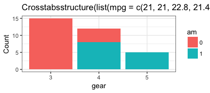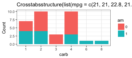 simplest case, plotting counts of how two variables cross-tabulate. Then