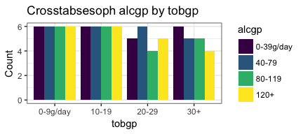 we’ll make CrossXYs give us lists for agegp by alcgp & tobgp.